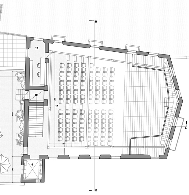 Una sala con 64 posti a sedere.