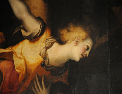 Mai prima di Teodoro D’Errico si era visto un arcangelo che entrasse nella scena in forma così dinamica. Caravaggio nel 1581 ancora doveva venire.