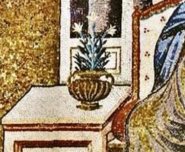 Pietro Cavallini solo nel 1291, cioè circa 60 anni dopo, metterà sul trono di Maria, nel grande mosaico di S. Maria in Trastevere, un vaso con il giglio.