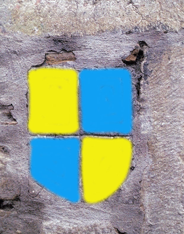 Credo che ragionevolmente si possa ritenere sia lo scudo araldico di Giacomo Caldora che, insieme al figlio Antonio, ha avuto un rapporto particolare con Trivento. Lo stemma dei Caldora era inquartato, il primo ed il quarto di oro, gli altri di azzurro.
