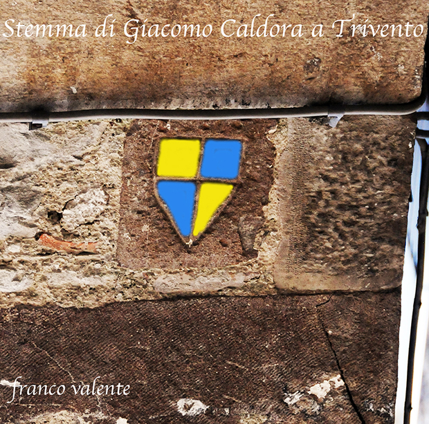 La pietra in questione ora costituisce una prova concreta del dominio di Giacomo Caldora a Trivento perché fa immaginare che dopo la sconfitta del figlio siano state apportate modifiche all’apparato murario del Castello, dove certamente era collocato, e lo stemma, divenuto elemento erratico, sia stato riutilizzato in epoca abbastanza recente, credo nel XIX secolo, come pietra d’angolo di una costruzione riedificata dopo il terremoto disastroso del 1805, peraltro a testa in giù.