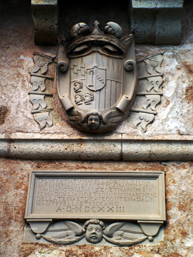 LVCRETIA TVMACELLA DE COLONNA BARONESSA DI CERRO ET PLAISANO DVCHESSA DI PALIANO TAGLIACOZZO ET MARSI PRENCIPESSA DI PALIANO ET SONNINO MARCHESE DELL’ATESSA ET DI CAVE CONTESSA D’ALBI MANVPPELLI ET CICCANO – A.D. MDCXXIII.