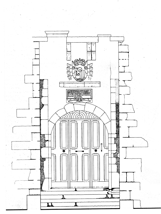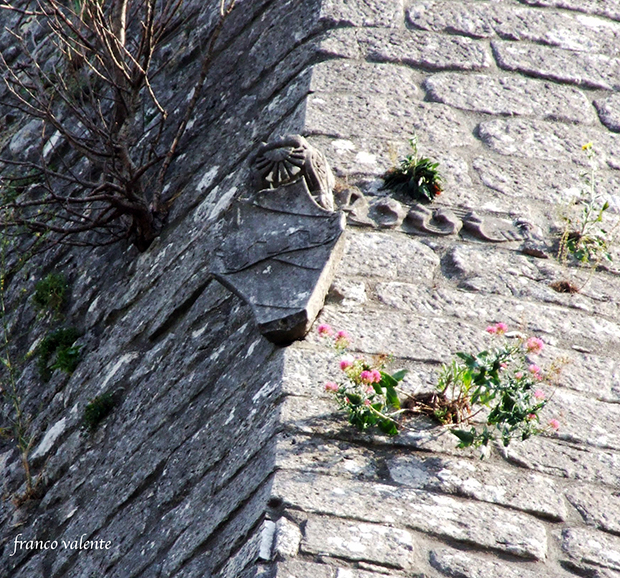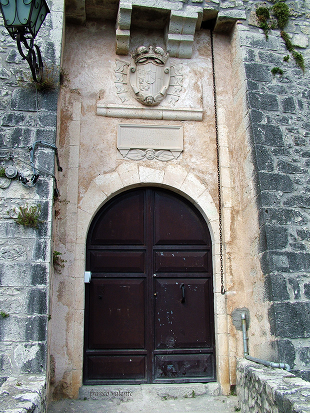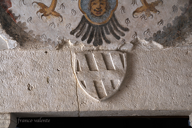 Lo stemma dei Pandone sullo spigolo del bastione settentrionale.