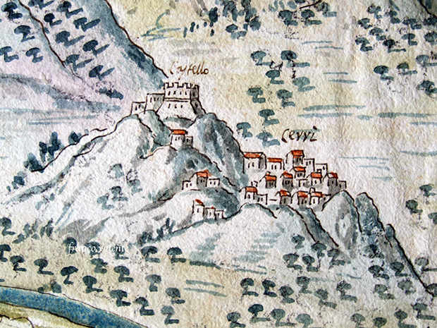 Il cod. Cassinese 697 ci offre alcune notizie su Cerro al principio del XVIII sec.:“Parte del territorio di Cerro è situato dentro una valle e questa parte si chiama Civita e parte è edificata sopra un gran sasso e questa si chiama il Castello. Di più tiene 15 casali, oltre altri diruti. Delli suddetti casali uno et il più numeroso si chiama il Cupone e gli altri hanno il nome di S. Giovanni, le Fuci, S. Vittorio, Cerreta, Piano d’Ischia, le Casi, Valluni etc. Tali casali hanno mantenuto a tutt’oggi gli stessi nomi. Nella parte della suddetta terra chiamata Civita vi è la chiesa madrice sotto il titolo di Santi Apostoli Pietro e Paolo … Nell’altra parte della terra nominata il Castello vi è la chiesa madrice sotto il titolo di S. Maria Assunta