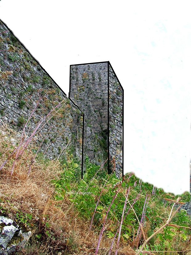 All’interno di esso, o per meglio dire attestati sugli spigoli diametralmente opposti, possono individuarsi due torri quadrate, una più piccola sul lato meno accessibile, ad est, con funzioni preminentemente di osservazione e l’altra, sull’angolo occidentale, molto possente adatta alla difesa e quindi in funzione di mastio.