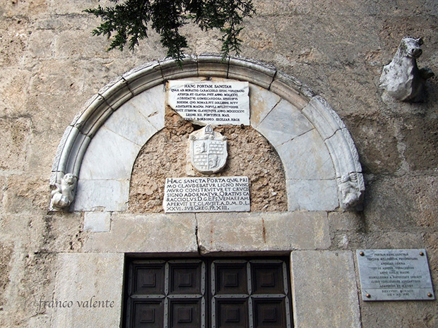 E’ comunemente definito come “Porta Santa” per la tradizionale cerimonia giubilare attestata dalla lapide che il Vescovo Caracciolo fece inserire nell’archivolto in occasione della sua chiusura muraria nell’anno 1576.