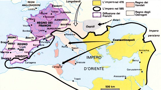 Con Odoacre, re degli Eruli, che nel 476 occupava l’Italia spingendosi da Milano fino a Roma dove prendeva prigioniero Romolo Augustolo, ultimo imperatore, per portarlo prigioniero a Napoli, si concludeva la grande epopea dell’impero romano. Qualche anno dopo, nel 488, Teodorico, re dei Goti, invadeva l’Italia completando nel 494 la conquista del Meridione. Anche il Sannio venne occupato, come ricorda Cassiodoro nel riferire di un viaggio di milizie gotiche dal Sannio e dal Piceno verso Ravenna, all’epoca di Teodorico (CASSIODORO).